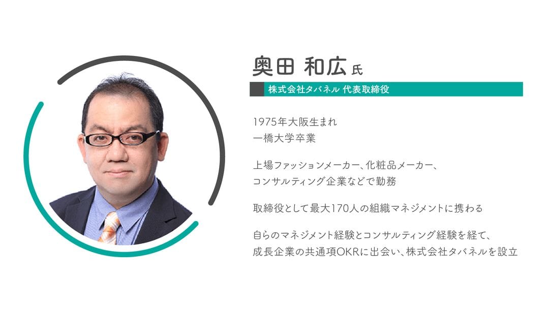 OKRは一般的な組織はもちろん、歯科医院固有の組織課題の解決に有効に働きます。そこでOKRを活用して、いかに歯科医院に活用していけば良いか?について、数多くの組織支援を行ってこられ、OKRに関する専門家としてご活躍されている株式会社タバネル 代表取締役の奥田 和広様に解説いただきました。